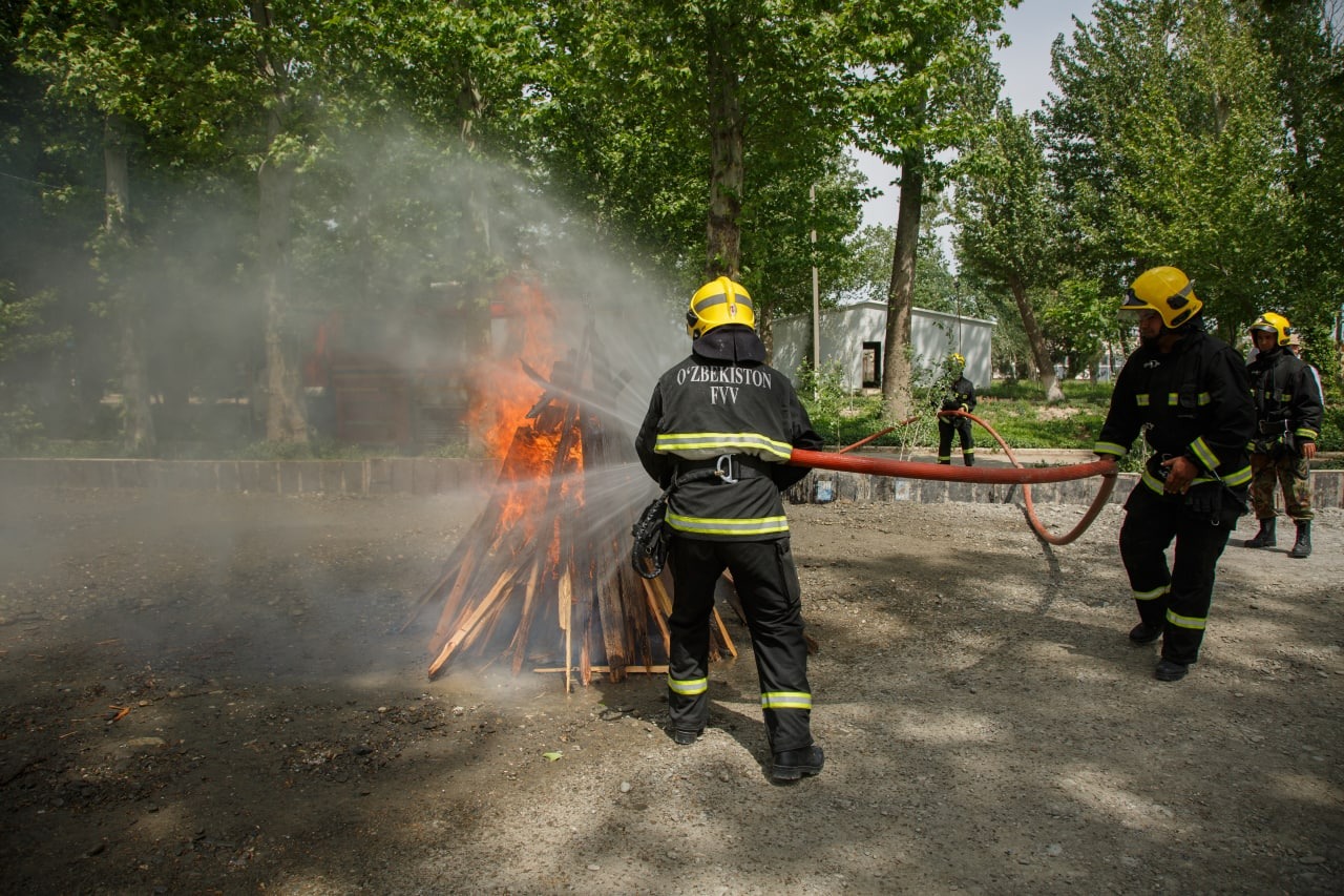A practical firefighting training exercise (drill) was arranged following the demonstration of primary firefighting equipment, which was aimed at acquiring practical skills in extinguishing real fires with firefighting equipment and with the help of mobile equipment of the Ministry of Emergency Situations. The drill was held and completed at the highest professional level and involved an extensive discussion.